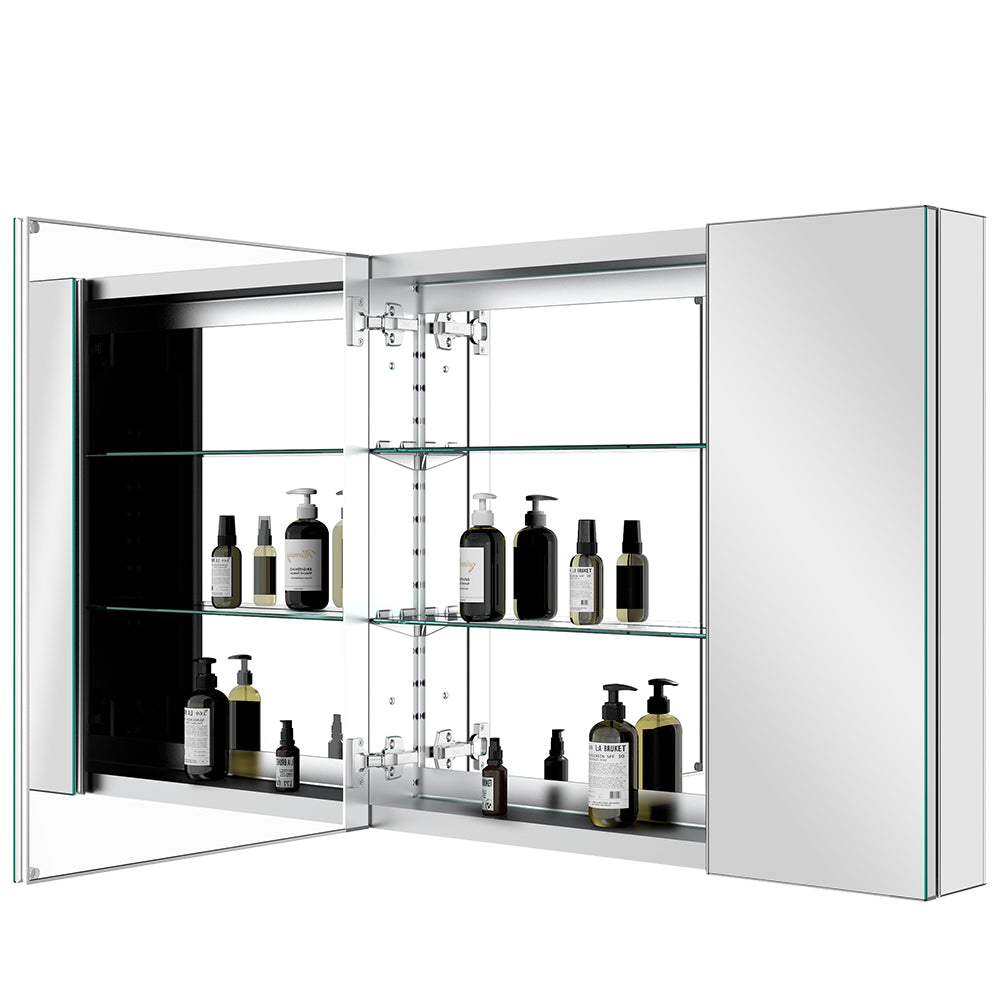 36"x26" Mirrored Medicine Cabinet for Bathroom 3 Door Recessed or Surface Mount, Silver Aluminum