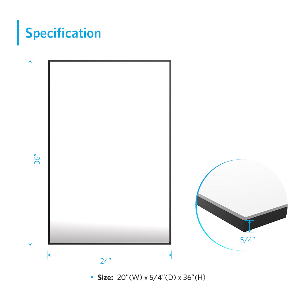 - 24 (W) x 36 (H) x 0.8 (D) Inches